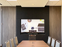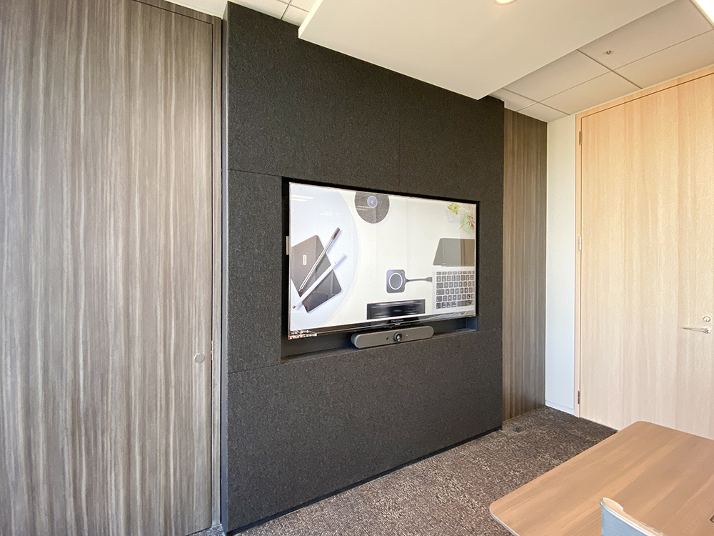 会議室の反響対策として吸音パネルを導入し、TVモニターを囲む形で設置しました。