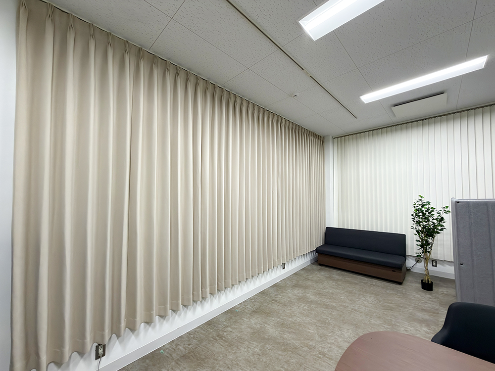 高崎量子技術基盤研究所様 吸音ブラインド / 吸音アコースティックカーテン 2026-03-30 最終更新日時 : 2026-03-23 tokyoお問い合わせフォーム☎ 0120-47-8145高崎量子技術基盤研究所様 会議室 吸音ブラインド / 吸音アコースティックカーテン採用背景会議室の改装工事に伴いお風呂場のように声が反響し落ち着かない空間となっていましたが、吸音製品を取り付けたことで音の響きが大幅に軽減。施工後は会話が穏やかに伝わる、リラックスできる快適な会議室へと生まれ変わりました。information製品:吸音ブラインド / 吸音カーテン吸音バーチカルブラインドW3470×H2730ホワイト 1台吸音カーテンW5400×H2700BT-2002 1ヶ所設置場所:国立研究開発法人量子科学技術研究開発機構 高崎量子技術基盤研究所 会議室各種製品についてお問い合わせフォームはこちらフリーダイヤル: 0120-47-8145電話でのお問い合わせ
