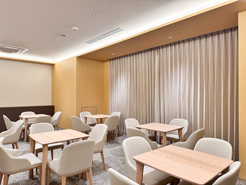 挙式開始までご親族が過ごす控室として、また会議・ミーティング等でも利用できる部屋として、落ち着きが必要な空間に最適なカーテンです。
